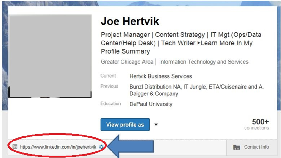 If you have a LinkedIn account, then you have your own unique internet-address called a URL. This address is what browsers use to find you on the internet out of the other 500M LinkedIn members. Your address is unique to you and if you haven’t customized it will likely consist of your first and last name followed by numbers, letters, and dashes. Something like: